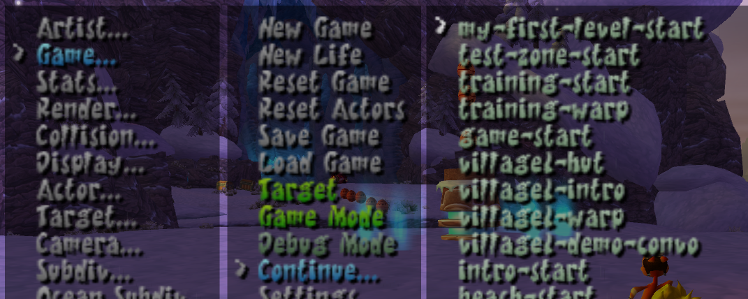 The debug continue-point can be changed, doing so can save you a lot of time if you have to do a lot of iteration and always need to open the debug menu to load in your level.