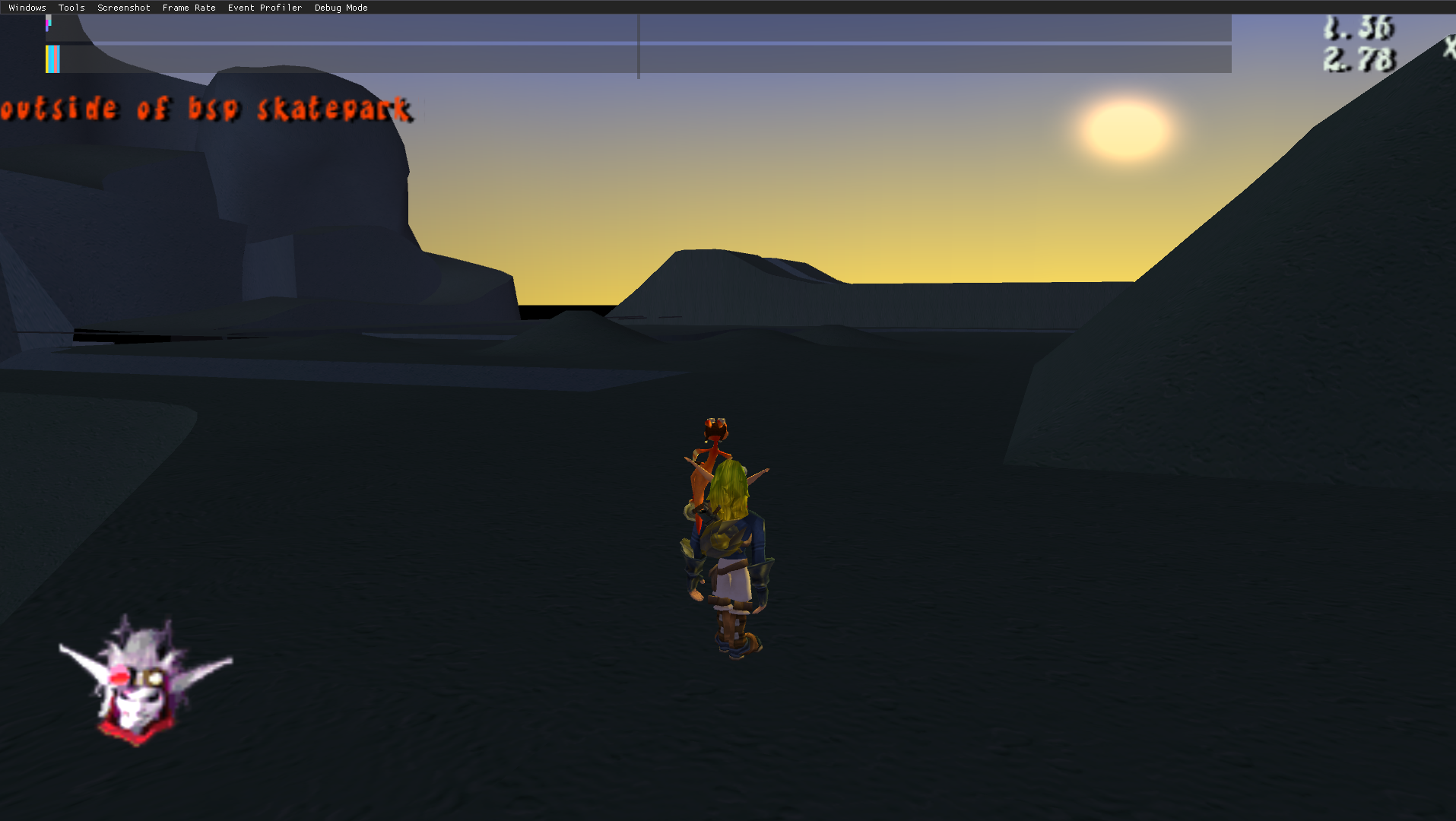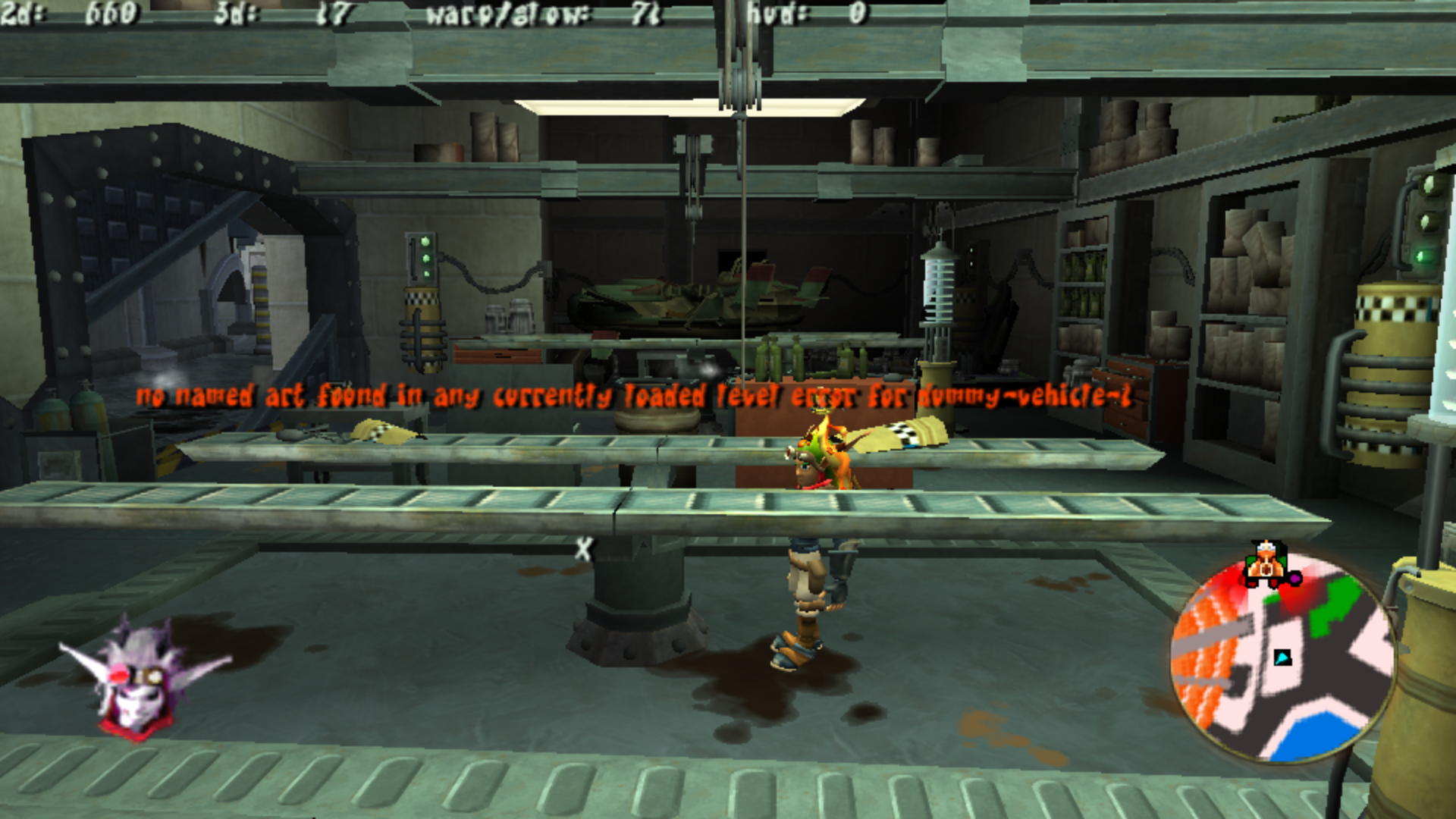 [2023-04-04] Hacking around that pesky gui-control issue, the Daxter chase sequence is pretty playable, though the streaming animation speed is too slow